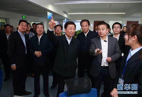 11月17日,中共中央政治局委员、国家副主席李源潮在北京调研科普信息化建设,出席中国科协科普信息化工作座谈会。这是李源潮在新华网调研。新华社记者丁海涛摄
