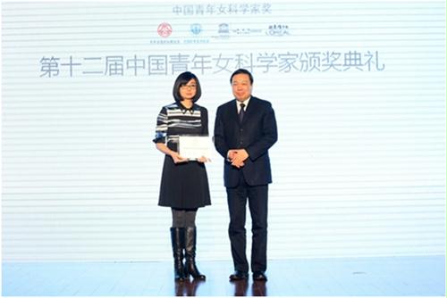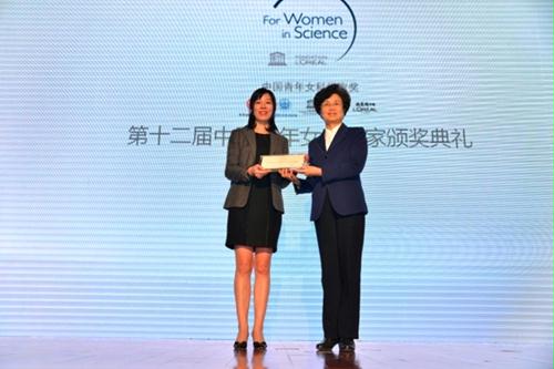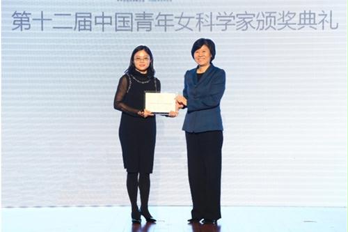 2015年12月22日,由中华全国妇女联合会、中国科学技术协会、中国联合国教科文组织全国委员会以及欧莱雅中国共同主办的第十二届“中国青年女科学家奖”颁奖典礼在京举行。全国人大常委会副委员长、全国妇联主席沈跃跃出席颁奖典礼并为获奖青年女科学家颁奖。中国科协党组书记、常务副主席、书记处第一书记尚勇出席颁奖典礼并代表主办单位讲话。全国妇联副主席、书记处第一书记宋秀岩,中国科协副主席、书记处书记张勤,中国科协副主席、国家自然科学基金委员会副主任、中国科学院院士沈岩,中国联合国教科文组织全国委员会秘书长杜越,法国驻华大使馆科技专员白沙潍,欧莱雅中国副总裁兰珍珍,清华大学化学工程系教授、中国科学院院士费维扬,2015年“世界杰出女科学家成就奖”获得者、中国科学技术大学教授、中国科学院院士谢毅,2016年“世界杰出女科学家成就奖”获得者、中国农业科学院哈尔滨兽医研究所研究员陈化兰出席颁奖典礼并为获奖者颁奖。全国妇联副主席、书记处书记焦扬主持颁奖典礼。