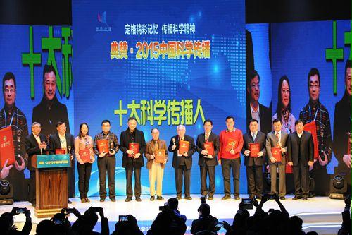活动现场,神秘嘉宾——机器人率先揭晓了“十大科学传播事件”,屠呦呦获诺贝尔奖、公民科学素质调查结果公布、“我们恨化学”广告被批判等事件入选,北京大学教授周公度作为传播事件当事人发言。