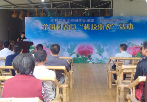 9月29日,成都市城市林业和园林管理局联合成都市植物园在金堂县转龙镇大桥村鲜花山谷开展全国科普日“科技惠农”活动,向转龙镇鲜花山谷捐赠木芙蓉幼苗1500株。
