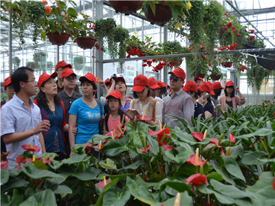 根据安排,我们社区将沿着“现代农业之旅”的路线,参观都江堰现代农业科技示范园区。队员们跟随着旗手首先参观了设施花卉生产示范、工厂化食用菌生产示范、农产品分选包装物流等等,看到了设施最先进的现代农业科技。