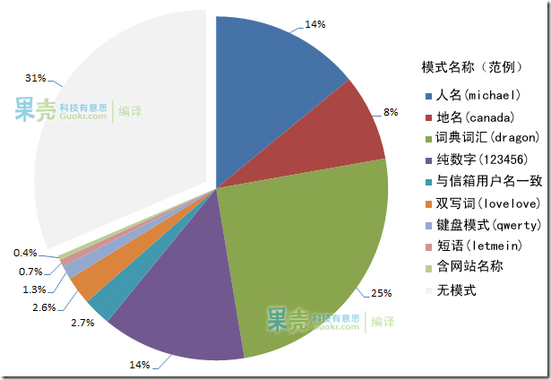 有人对用户的密码做过统计,研究他们设置密码时的偏好,并将统计结果绘制成图。 61% 的用户喜欢使用人名、地名、字典词汇和纯数字来设置他们的密码。甚至还有2.6%的用户直接把他们的用户名当做密码使用(比如把 guokr123@ ...的密码直接设置为 guokr123 )。这些都是具有安全隐患的密码设置策略!黑客们了解用户的密码设置习惯后,就可以编写“密码词典”,有了这本词典后,就可以在暴力破解的时候大大提高精准性。比如在 这里 可以下载到 10,000 个常见密码的词典(该词典作者称有 99.8% 的用户都是使用这本词典中的密码)。有人对Sony公司的用户密码也做过 研究调查 ,结果也令人堪忧。