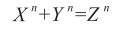 费马看到了这个定理之后,他把这个定理稍加改造,即用n次方代替平方,他想,能不能找到一个不是0的自然数,它的n次方等于另外两个自然数n次方的和呢?如下式所示: