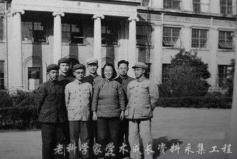 1955年戴元本(左三)在南京工学院科学馆前合影