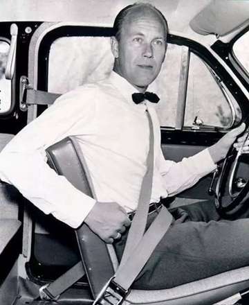 1902年在纽约举行的一场汽车竞赛上,一名赛车手为防止在高速中被甩出赛车,用几根皮带将自己和同伴拴在座位上。竞赛时,他们驾驶的汽车因意外冲入观众群,造成两人丧生,数十人受伤,而这几名赛车手却由于皮带的缘故死里逃生。这几根皮带也就成为汽车安全带的雏形,在汽车上首次使用,便挽救了使用者的生命。