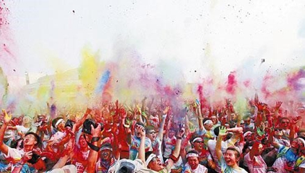 而说到真正推动彩色玉米淀粉被广泛使用,带它真正走入大家的视野的因素,就不得不提到最近两年,被誉为“地球上最欢乐5公里跑”的The color run(下称彩色跑)。彩色跑活动2011年诞生于美国,2013年这股彩色旋风吹到全球超过30个国家和地区、超过170站活动,全球参与彩色跑的人数接近百万。在5公里的路程里,主办方会在节点向运动员抛洒红、黄、绿、蓝、紫五种颜色的玉米粉,运动员之间也会互相抛洒。它的官方解释是:The Color Run,又称“地球上最欢乐的5公里跑”,是一个独特的色彩主题的跑步活动,宣传健康、快乐、个性。人们用来互相“攻击”的彩色粉末包就像泼水节泼洒的水,带来的是友善和祝福。