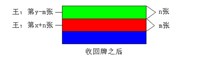 这样做之后,两张要猜的牌的位置也随之变化,但是x、y、m、n都已经知道,只要稍微计算一下就能知道他们最终的位置(视频中最终是17张和43张),这里就不详细解释了。