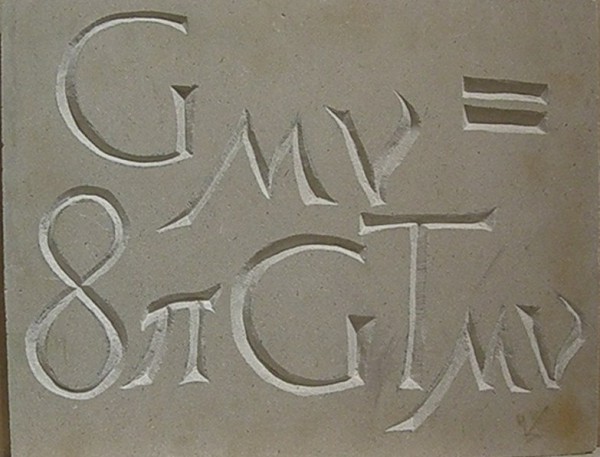 【爱因斯坦场方程,是一个张量方程,有N×N个分量,也可以认为是方程组 图片出处:http://www.thecarvingworkshop.co.uk/