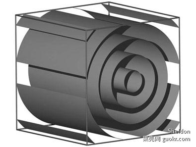 【图4.7 爱因斯坦–罗森宇宙包含了圆柱形的引力波,引力波从膨胀宇宙的一条线中发出,向外传播】