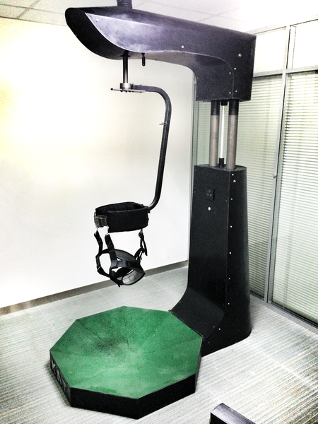 从结构上来看,KAT Walk的设计与Omni和Cyberith Virtualizer有很大不同,采用的是开放式独立支撑设计,躯干周围没有腰环或立柱等结构的阻挡,四肢自由,上肢可以做出真实的劈砍、挥舞、拾取、拍打等动作,下肢做走、奔跑、踢踹等动作时也不会被限制或与设备发生碰撞。同时,双臂可以自然下垂和摆动,符合人体自然动作姿态,能够增加平衡感。