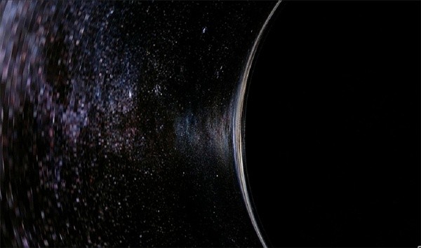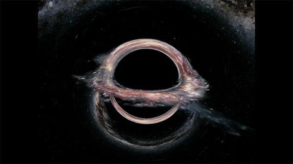 影片对黑洞的视觉呈现是一圈流转光轮环绕在暗黑的深渊周围。这个由基普·索恩亲自建模的黑洞,无论在电影还是科学界,都堪称有史以来最精确的模拟,但仍留下了疏忽。吸积盘为了不掉进黑洞,必须绕黑洞超高速旋转,考虑多普勒和相对论性射束,在宇航员看来,向他们飞来的物质看起来应该亮而更蓝,离他们而去的应该暗而更红,这导致吸积盘应该色彩斑斓。而片中的大光轮是明亮的一圈,并没有显著的颜色变化。也许索恩清楚,观众总是青睐对称画面的美感,所以故意放水为视觉添彩吧。