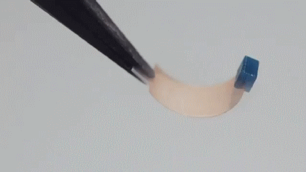 将这些细菌芽孢附着在微米级厚度的塑料薄膜上,就制成了驱动装置中最基本的元件。在涂有细菌芽孢一面的带动下,这些薄膜会随着湿度变化而改变形状:吸湿状态下较为平展,而干燥时则会卷起来。
