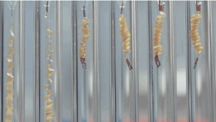 如果在长长的薄膜条带两面交替加上细菌芽孢,则可以得到受湿度控制伸缩的“湿度驱动人工肌肉”(hygroscopy driven artificial muscles,HYDRAs)。