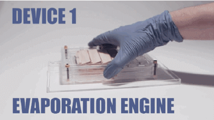 蒸发是自然界无处不在的现象,它也伴随着能量的流动,但人们却很少会去考虑如何将蒸发当中的能量利用起来。而最近,来自哥伦比亚大学的研究者向人们展示了一种将蒸发能量加以利用的新思路,他们利用塑料薄膜和细菌芽孢,做出了可以被水分蒸发带动的驱动装置[1]——“细菌蒸发发动机”。
