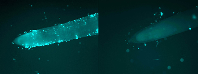左图:一般水稻的根部有丰富的产甲烷微生物。右图:转入SUSIBA2的水稻,根际的产甲烷微生物显著减少。图片来源:Chuanxin Sun and Anna Schnürer