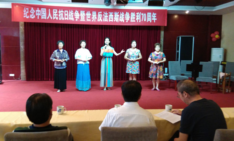 纪念活动上开展了以爱国、抗战为主题的文艺表演。演出了京剧毛主席诗词“娄山关”;沙家浜选段“八一三”等文艺节目。讴歌了中国人民抗日战争和世界反法西斯战争的伟大胜利。弘扬了中华民族不畏强暴,不屈不饶的民族精神,激励了中华民族发奋向上、建设美好家园的雄心斗志。