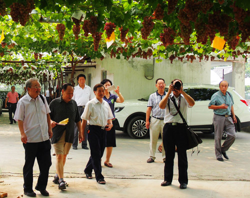 2015年7月30日,省老科协原会长张宗源、会长曾清华、副会长孙绍荣、韩凯明、李仁霖和市老科协副会长兼秘书长王宗全等一行,顶着酷暑,调研了双流永安镇省、市、县老专家服务营地工作,并深入红提葡萄专业合作社进行了考察。省、市老科协领导在双流县老科协副会长兼秘书长黄帮君,永安镇农技综合服务站站长、老专家服务营地办公室主任徐正建的陪同下,调研了四友葡萄农庄、聚友葡萄农庄和萄缘农场的生产、营销及发展情况。大家对永安葡萄的栽种面积、经营管理、新技术新产品推广应用、经济效益等成绩赞叹不已。