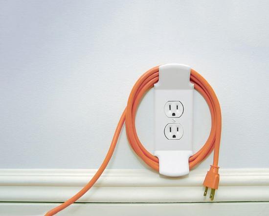 电线收纳插座:告别城市蜘蛛网 只要在传统的插座两端分别加一个小小的卡槽,就能解决这一问题。无需使用的时候,只要把电线绕在卡槽里就可以了。 -
