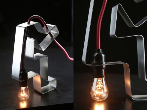 拉翔灯:Foolamp 拉翔灯(Foolamp),金属材质的框架,弯弯曲曲走出了个人样,而灯泡,却一反常态地直接与桌面相连,与金属框架一起支撑起了整个灯。