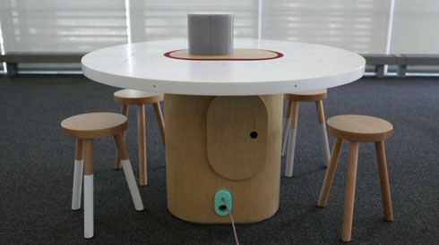 能听懂人话的桌子 与一般桌子相比,它的中间多了一个圆筒状物体,那是收音麦克风,此物能精准捕捉谈话人员的声音,并能通过定制语音处理软件,将语音转换成文字。 -