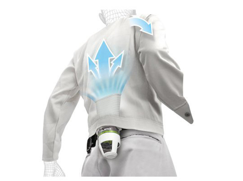 可以夹在腰带上的风扇 可直接夹在腰带上;风道是可弯曲的漏斗状,可放进衣服中。 -