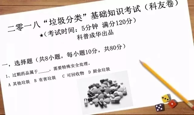 垃圾分类知识考试 今天,小科又为广大科友们准备了一套试题,希望借此能让大家学习到更多垃圾分类的相关知识。加油,小科期待着你们的满分!愿大家都能成为一名合格的环保卫士。 -