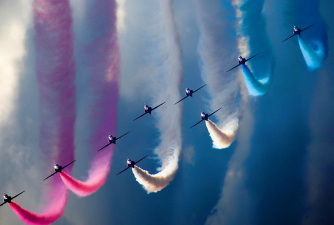 阅兵中的彩烟是啥? 8月23日,北京上空各式飞机开始彩排,很多人用手机拍摄到了壮观的飞机彩色拉烟,并上传到各种社交网站。不少人好奇,这飞机的彩色拉烟是怎么弄的?有毒吗?它跟平时见到的飞机拉烟有什么区别? -