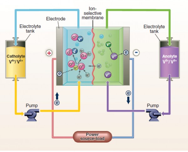 什么是液流电池? 液流电池的能量转化不再依赖于固体电极,而是流动的液体,因此得名。相比于使用固体电极的传统电池,液流电池有一个明显的好处就是赋予了使用者更大的自由来调节电池的性能。与传统蓄电池相比,液流电池还有一个显著的优点就是电池变得更加容易维护。 -