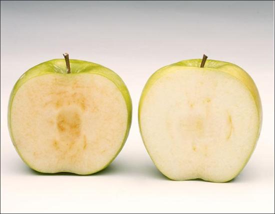 转基因苹果即将在美国上市,切开三周不变色 加拿大一家由8个人组成的公司 Okanagan Specialty Fruits,通过基因改造技术把苹果褐化的时间延长到了三周。 -